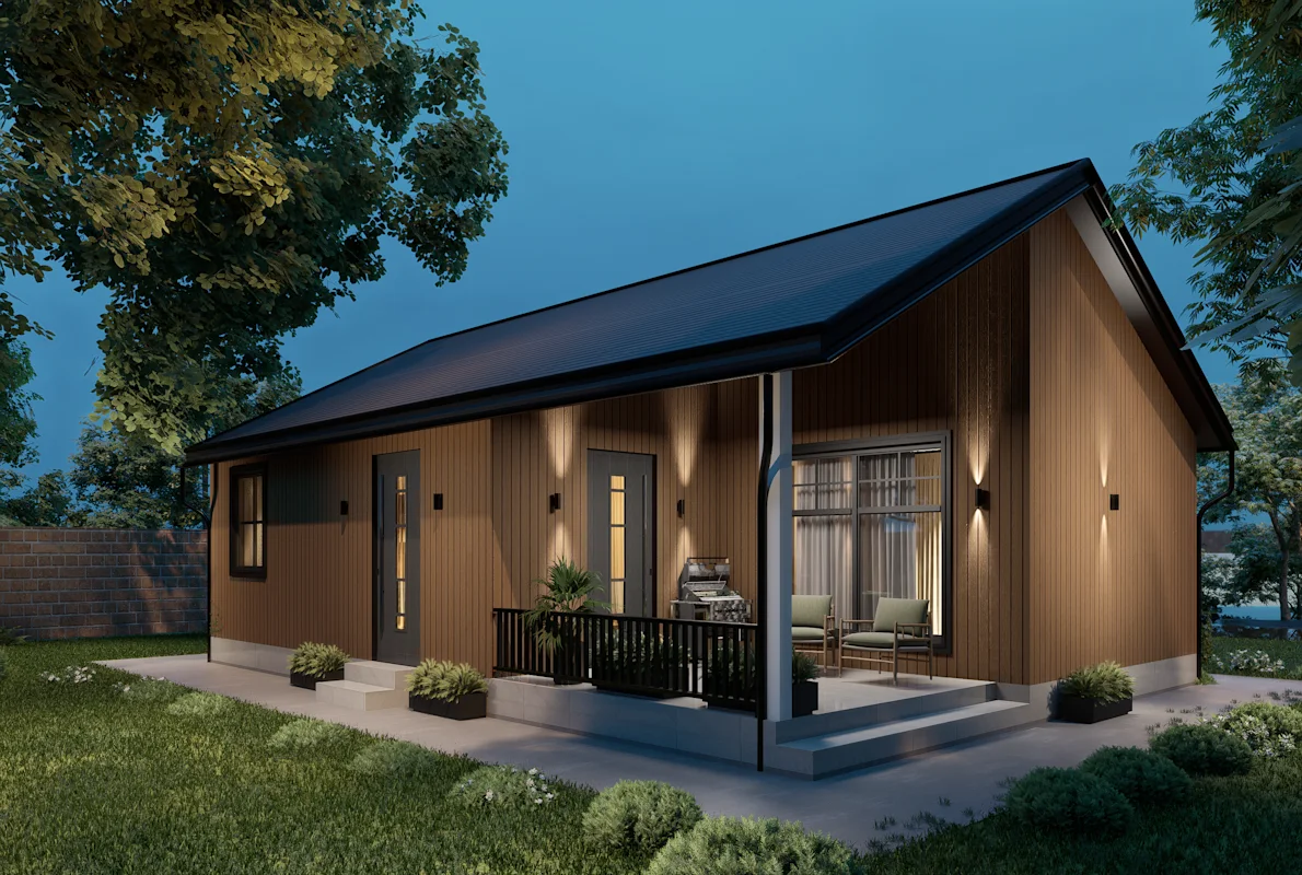 Dunmore 1, with A Roof Triple Insulated 45 sqm one Bedroom House with Large Windows and Vaulted Ceilings.