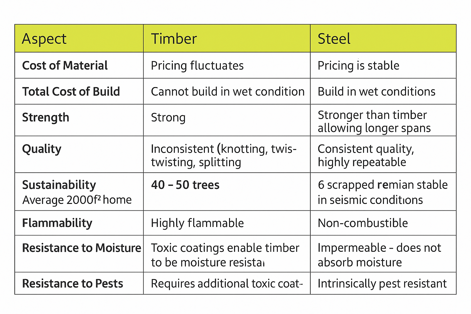 Steel does not warp, twist, rot, or shrink, meaning the structure stays perfectly straight for decades.